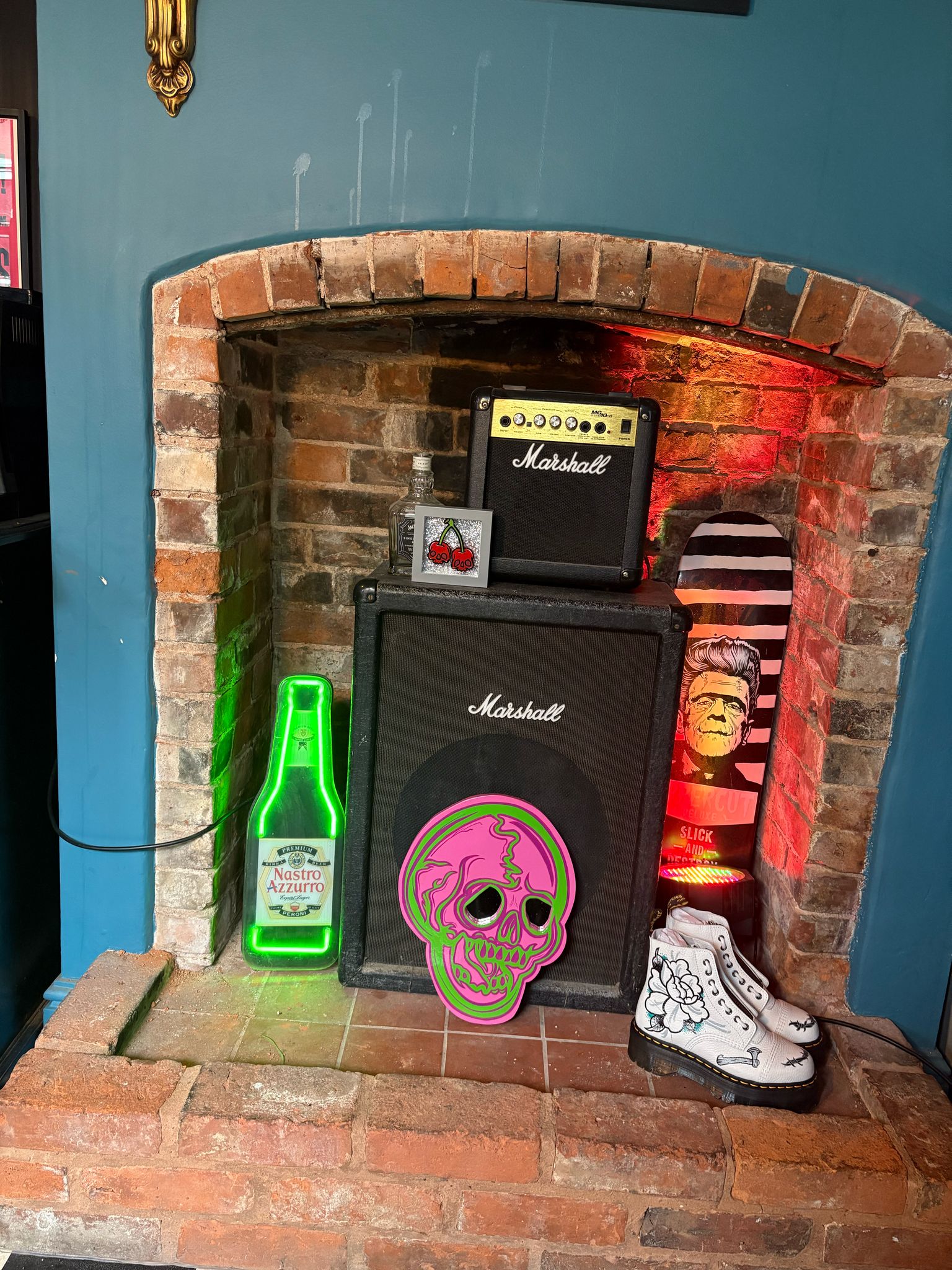 Green and Pink pop punk skull with mirrored eyes so you can...LOOK DEATH IN THE EYES AND SAY NOT TODAY PAL 💀☠️